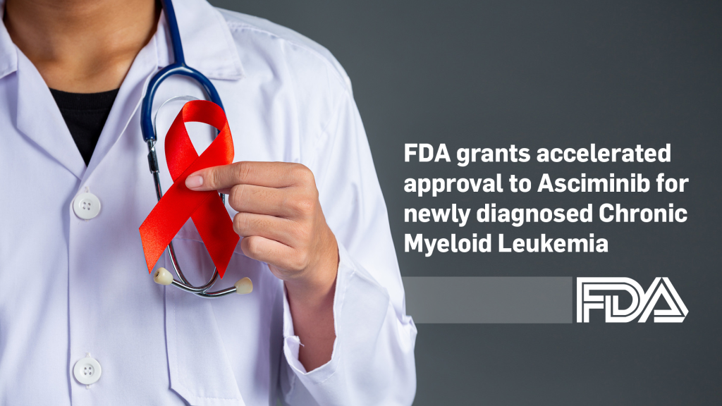 October 29, 2024- Today, the U.S. Food and Drug Administration has granted accelerated approval to Asciminib(Scemblix) for the treatment of adults with newly diagnosed Philadelphia chromosome–positive chronic myeloid leukemia (Ph+ CML) in the chronic phase.